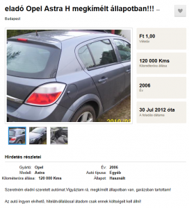 A Jazzy rádió „Millás reggeli” című műsorában az autós hirdetésekről volt szó. A műsorba hívott szakértő megdöbbentő adatokat közölt a piacról. Elmondása szerint a gépkocsikat hitelátvállalással eladásra kínáló hirdetések száma az elmúlt időszakban megtízszereződött. A hitelátvállalással autót kínáló hirdetők kb. 60%-a ingyen is odaadná az autót. De ami még ennél is meglepőbb, 10%-uk még ráfizetni is hajlandó. Azt hiszem erre mondják, hogy színtiszta ráfizetés.